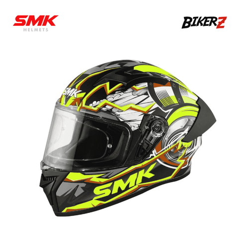 SMK Stellar Sports Turbo Full Face Helmet – Gloss Black Yellow Gray (GL246)